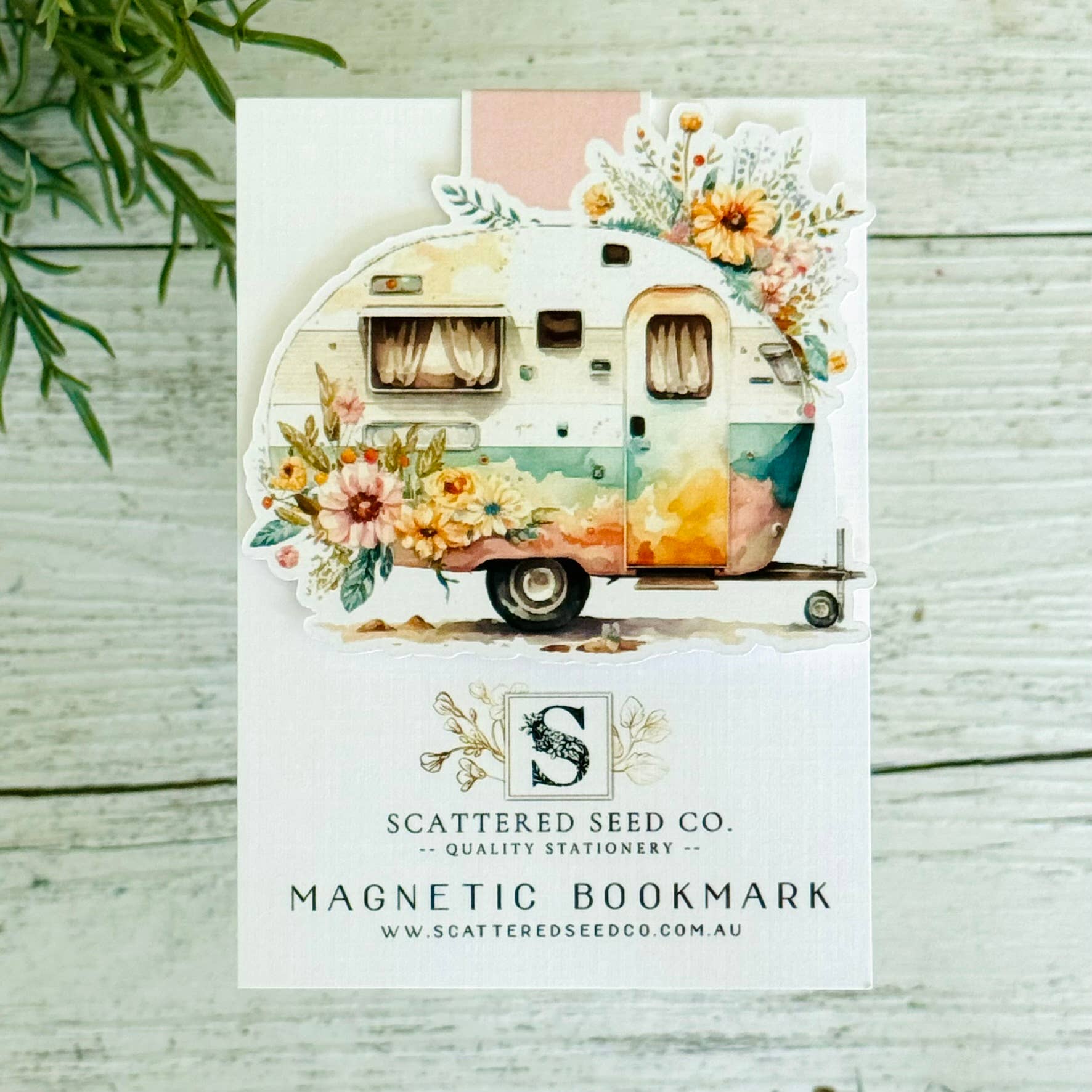 Magnetic Bookmark: Floral Pink Vintage Caravan